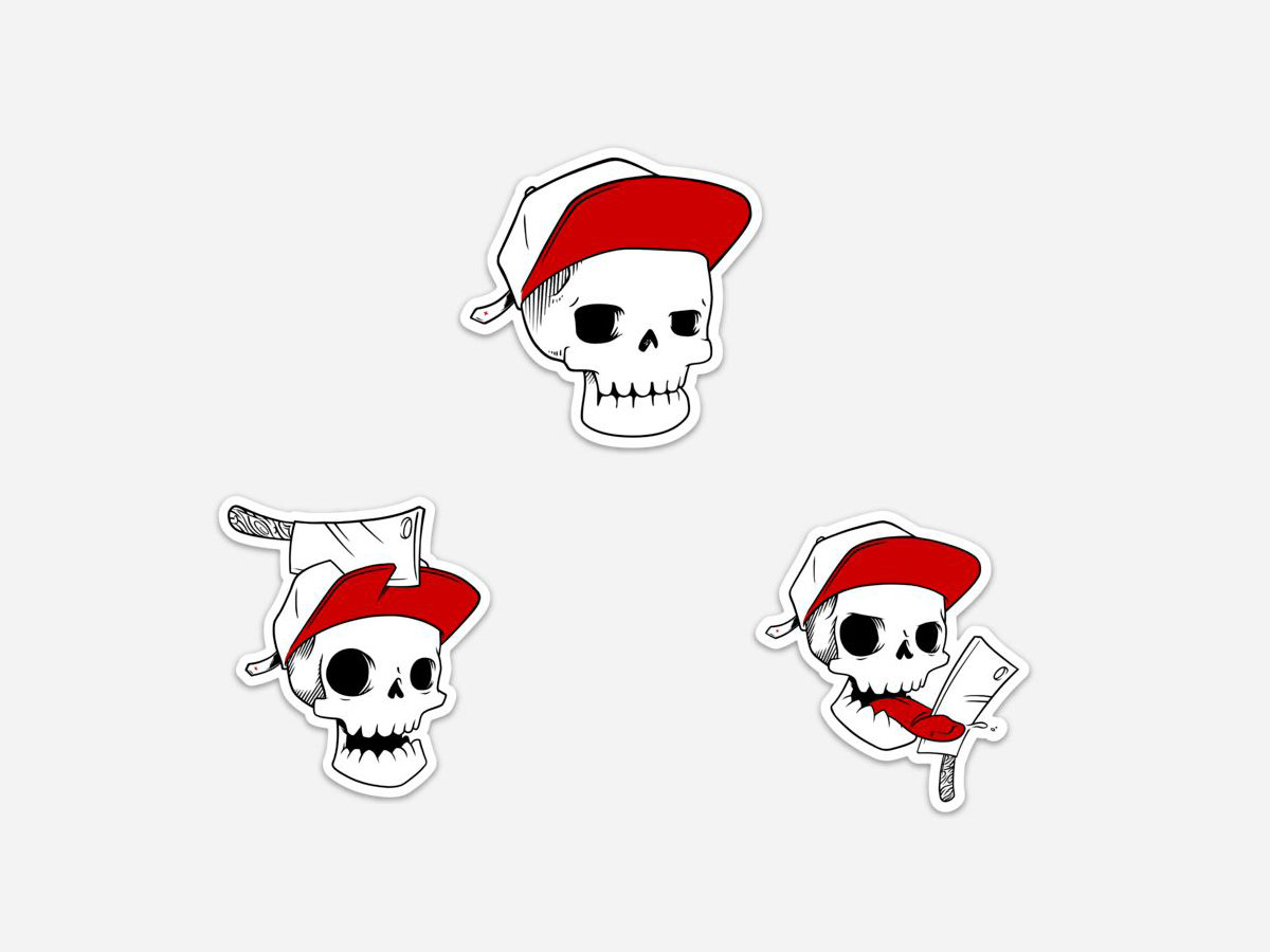 Set of three 3 inch die-cut stickers. Artwork by Hatch.
